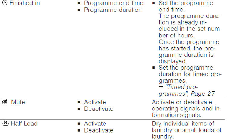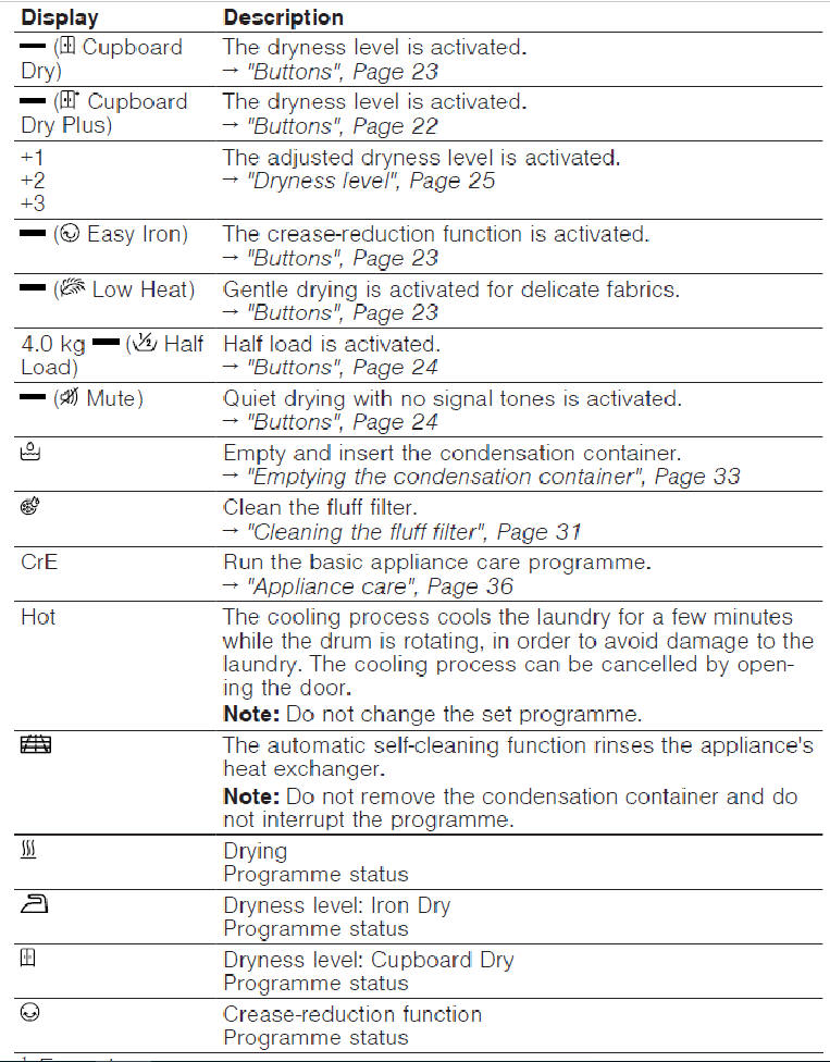 If the door is opened while the drying process is in progress, the drying process will continue for another 5 minutes. The display shows “close door” and counts down the 5 minute programme pause period. If the door is closed within this 5 minute period, the drying process will continue. If the door is left open, the drying process will stop after 5 minutes and must be restarted manually. If you wish to stop the drying process immediately, without a 5 minute period, press START/STOP.