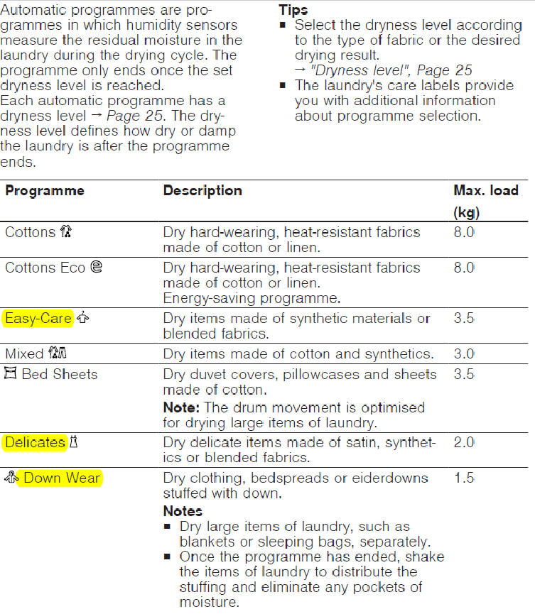 Stick to the maximum load kg for the program category being dried.